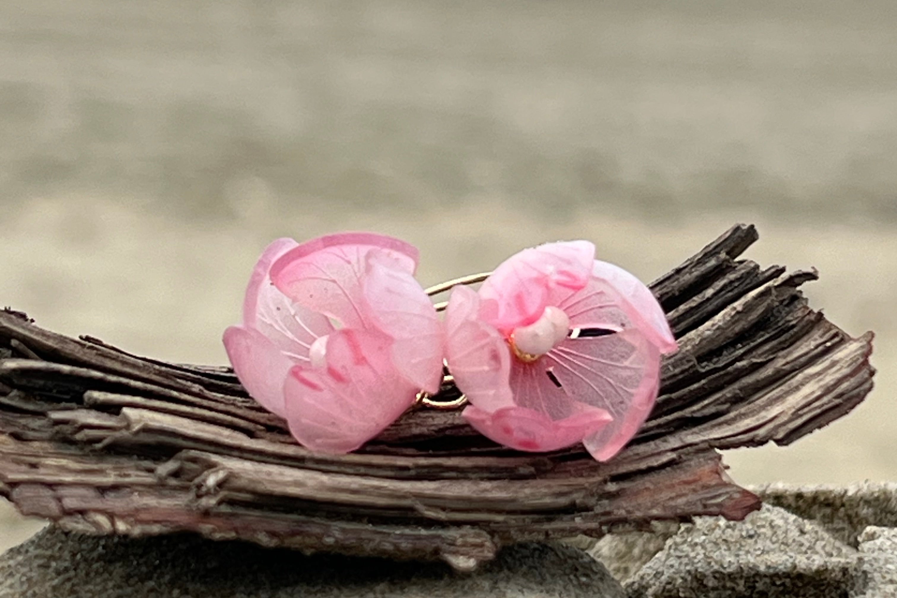 Boho-Ohrringe CERISE – Handgemacht goldene Ohrhänger mit Blütenanhänger