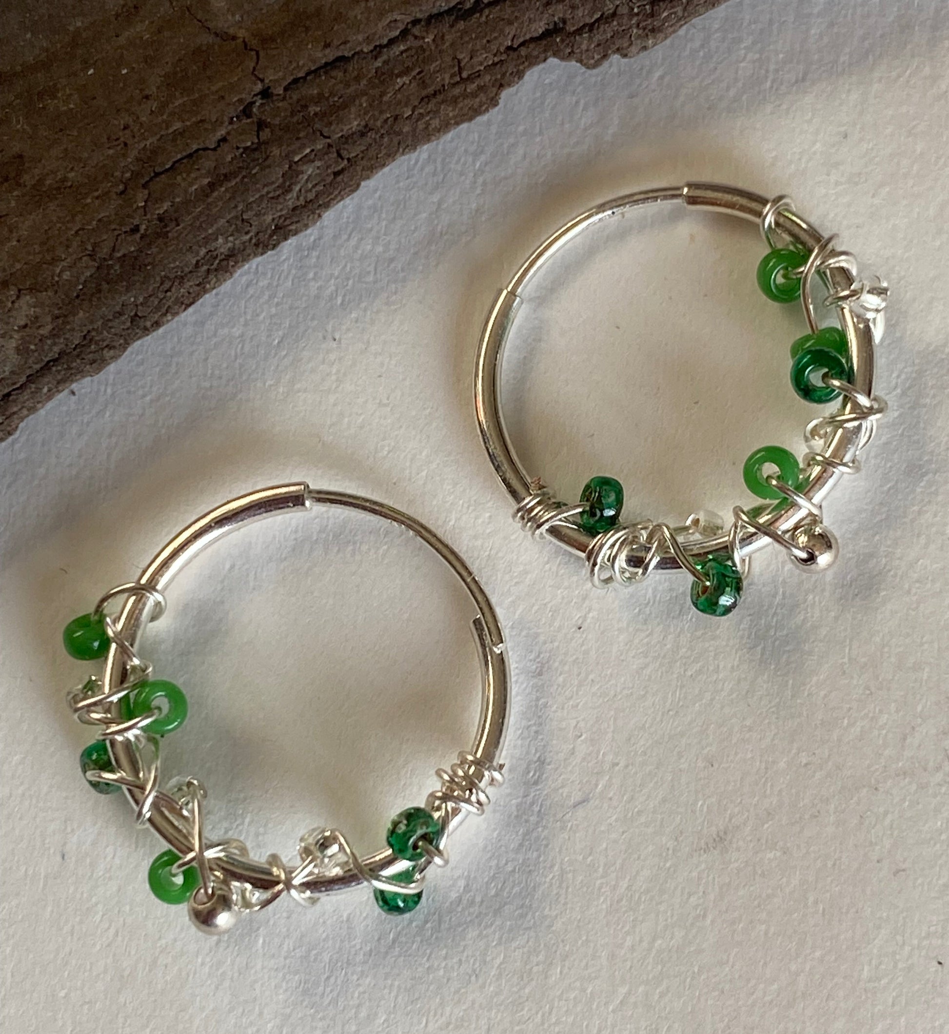 handgemachte 925er Sterling Silber Mini-Creolen und Glasperlen | GRON